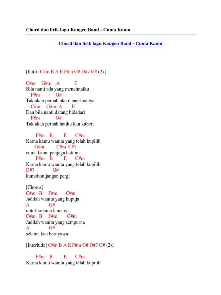 Chord Dan Lirik Lagu Kangen Band Cuma Kamu