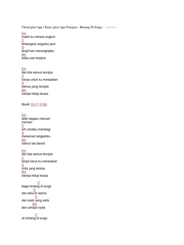 Pdf Chord Gitar Peterpan Bintang Di Surga Paling Mudah