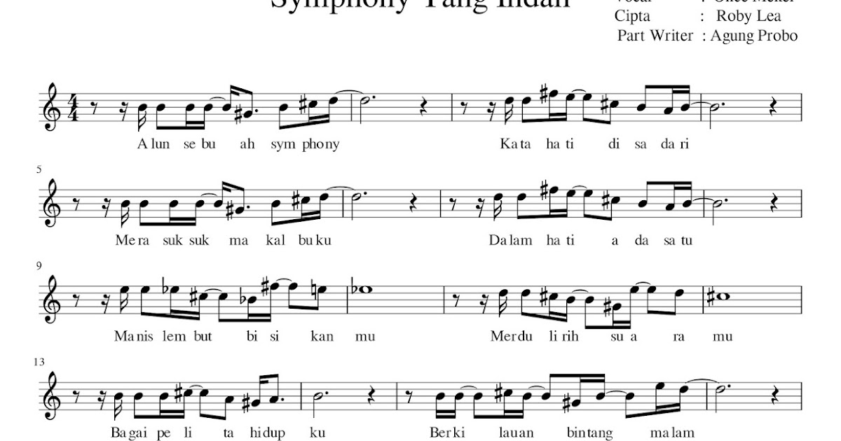 Not Balok Dan Lirik Symphony Yang Indah By Once Mekel