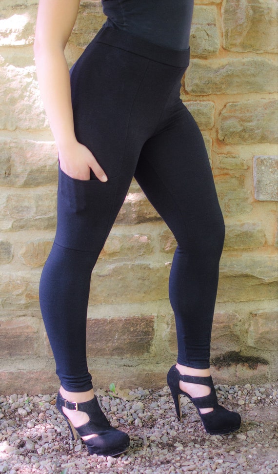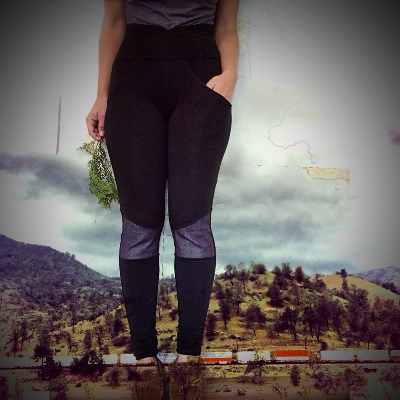 Pocket Leggings Denim Knee Patch Eco Friendly Bamboo Leggings Built In Pocket Jeggings Plus Size Any Size Workout And Yoga Leggings